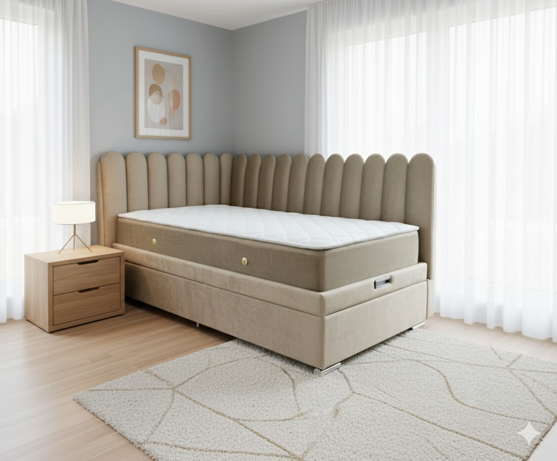 Visina kreveta 45 cm -bez dušeka (dušek upada 5 cm) Visina uzglavlja 105 cm, Dubina kutije za posteljinu 25 cm. Dužina kreveta 210 cm sa uzglavljem.Proizvodimo ih u svim dimenzijama.
